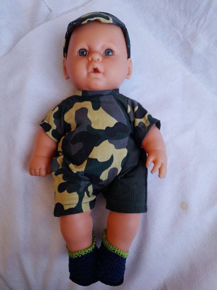 boneco importado, vestido de soldado homem, roupas novas,sapato de croche feito sob medida. mede 33cm.super conservado.cabeça braços e pernas de borracha.